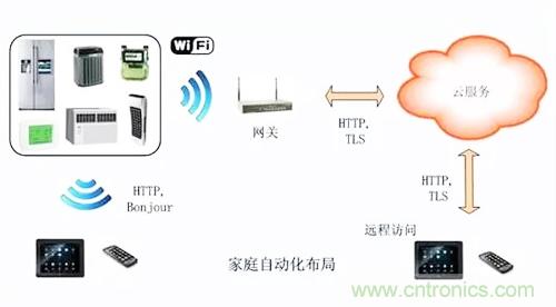 從上圖可看出,家庭自動(dòng)化系統(tǒng)將嵌入式微控制器技術(shù)、無線連接、接入網(wǎng)絡(luò)融合為一體。Apps軟件能夠使用戶發(fā)現(xiàn)家里的設(shè)備,予以設(shè)置,或者創(chuàng)建一個(gè)動(dòng)作加以控制。