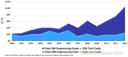 圖 5.增加軟件內容可推動 SoC 開發和成本節約。