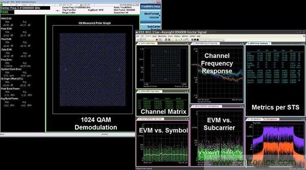 Keysight 89600 VSA軟體可協助工程師解調變和分析802.11ax訊號。一般而言,訊號產生和訊號分析硬體平臺應可根據效能要求和測試狀況進行最佳化,以滿足研發和制造需求。