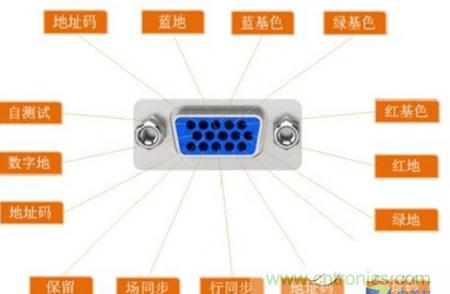 呈三列D型布置的VGA各個針腳傳輸?shù)奶囟ㄐ盘?/div>