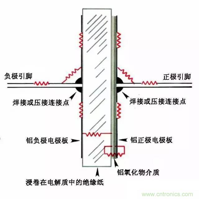 鋁電解電容還包括存在于濕的電解質溶液的電阻、以及含有高電平“水”的鋁氧化物(水合氧化鋁)中的電阻等。