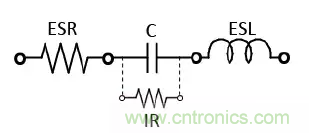 通常,為了便于分析電容的ESR,多用下圖的簡化方式來表示: