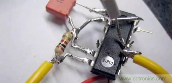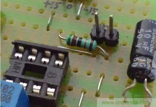 洞洞板的焊接需要大量的跨接、跳線等,不要急于剪斷元器件多余的引腳,有時(shí)候直接跨接到周圍待連接的元器件引腳上會(huì)事半功倍。另外,本著節(jié)約材料的目的,可以把剪斷的元器件引腳收集起來(lái)作為跳線用材料。