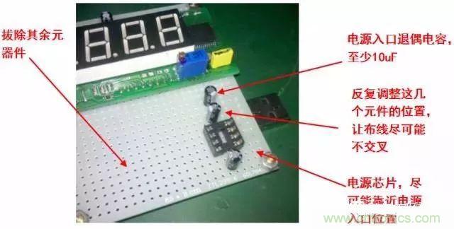 電源貫穿電路始終,合理的電源布局對(duì)簡(jiǎn)化電路起到十分關(guān)鍵的作用。某些洞洞板布置有貫穿整塊板子的銅箔,應(yīng)將其用作電源線和地線;如果無(wú)此類銅箔,你也需要對(duì)電源線、地線的布局有個(gè)初步的規(guī)劃。