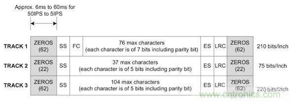 根據信息量的多少,數據將被編碼在不同的行,這個行被稱為磁道。一個磁卡上最多可以有3條磁道。