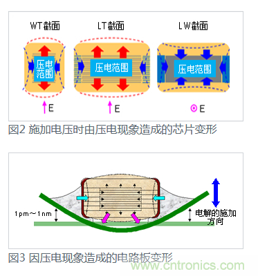陶瓷介質是MLCC主要組成部分,電壓作用下,電致伸縮不可避免。如電致伸縮強烈表現為壓電效應,則會產生振動。