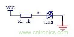 在電源與電路的A之間接入電阻時,A點的電壓就比電源電壓低,可以為發光二極管提供合適的電壓。電阻R1同時限制該條支路的電流,保護發光二極管不會因為電流太大而燒壞,這種電阻在電路中一般稱為降壓電阻或者是限流電阻。