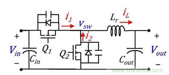 這是因?yàn)槿绻娏鱅是滯后與電壓V的,這樣在Q1開(kāi)啟之前電流I為負(fù)值就會(huì)charge Q2的Coss,同時(shí)discharge Q1的Coss,讓V到Vin,這樣Q1就實(shí)現(xiàn)ZVS turn on了。Q2開(kāi)啟之前,電流I為正,也會(huì)discharge Q2的Coss,和charge Q1的Coss,讓V到0,這樣Q2就實(shí)現(xiàn)ZVS了。