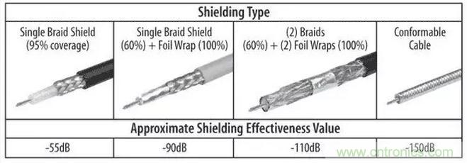 圖4:同軸電纜屏蔽可以用編織物、箔片或組合實現,以產生與電纜頻率不同的衰減規格。