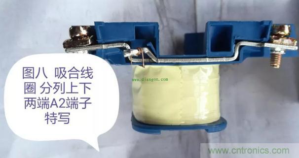 接下來我們再來看一下繼電器內部吸合部分的構造,在這部分當中以固定吸合磁鐵上短路環所引發的故障最為常見,詳情請看圖七至圖九的展示: