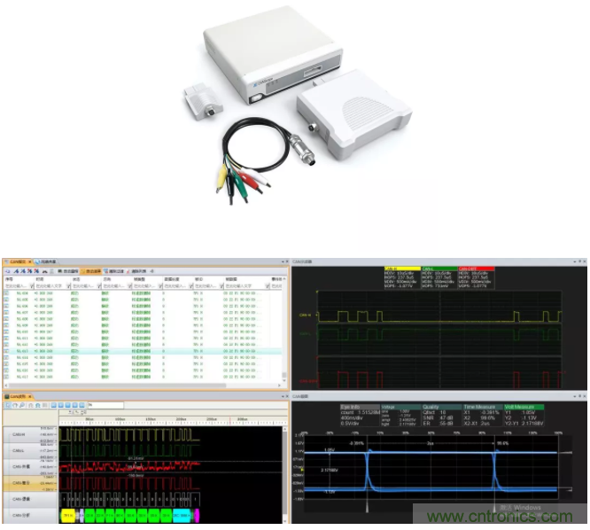 CANScope總線分析儀是一款綜合性的CAN總線開發與測試的專業工具,集海量存儲示波器、網絡分析儀、誤碼率分析儀、協議分析儀及可靠性測試工具于一身,并把各種儀器有機的整合和關聯,如下圖所示CANScope的軟件界面圖;重新定義CAN總線的開發測試方法,可對CAN網絡通訊正確性、可靠性、合理性進行多角度全方位的評估;幫助用戶快速定位故障節點,解決CAN總線應用的各種問題,是CAN總線開發測試的終極工具。