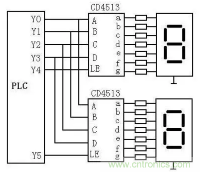 PLC可直接用開關量輸出與七段LED顯示器的連接,但如果PLC控制的是多位LED七段顯示器,所需的輸出點是很多的。