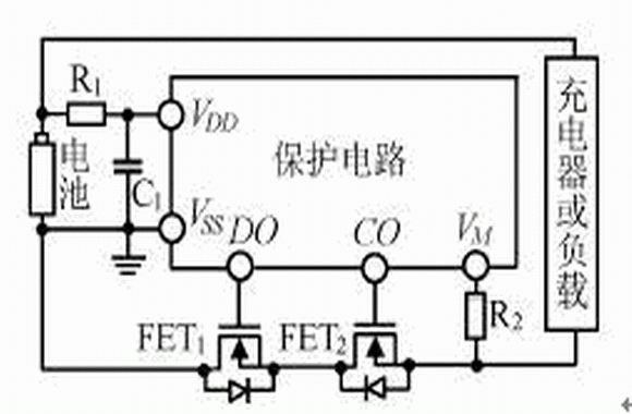 為了有效利用放電電流或充電電流,F(xiàn)ET1和FET2采用導通電阻很小的功率管。它們的選擇原則除了導通電阻要小,還要求體積小,并且關(guān)閉時源漏擊穿電壓要能經(jīng)受不匹配充電器的影響。從理論上說,F(xiàn)ET1和FET2可以用N 管也可以用P 管。但由于單節(jié)鋰離子電池保護電路的電源電壓較低,為了減小導通電阻,一般都采用N管。圖1中二極管是FET1和FET2的寄生二極管,它們的存在使系統(tǒng)在過放電狀態(tài)下能對電池充電,在過充電狀態(tài)下能對負載放電。