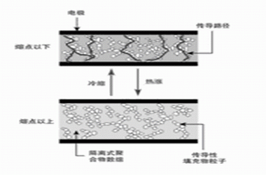 圖1 過電流或過溫狀況下,PPTC組件的保護原理