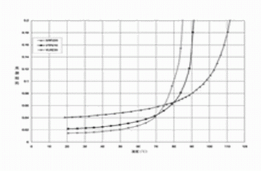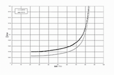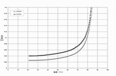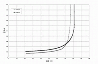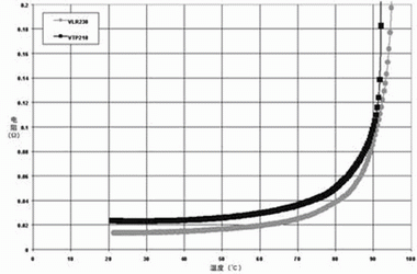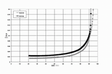 圖2 針對 PolySwitch SRP,VTP及VLR聚合物的PTC材料使用的無源阻抗 vs, 溫度曲線
