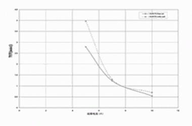 合此式,得出從Ta 到 TSw 動作時間。此式的重要性在于一已知的起始阻抗低切換溫度聚合物PTC組件,在故障期間提供更快速的動作時間,見圖2。當組件接近切換溫度時,該組件的阻抗增加,因此所產生的熱更具效率;切換溫度較低,因此在較短時間內就能達到所需的溫度變化。