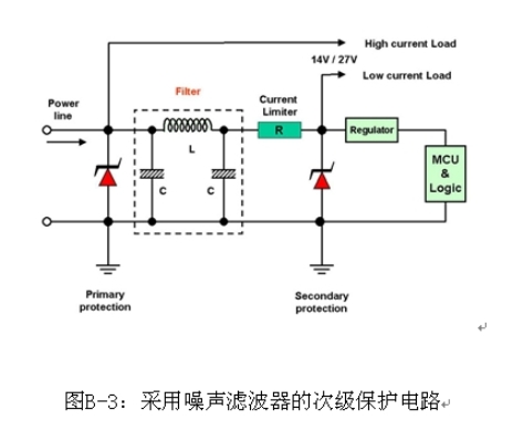 汽車系統(tǒng)中保護(hù)電路的初級目標(biāo)是高電位浪涌電壓,但是箝位電壓仍然很高,如表A-1和B-1所示。次級保護(hù)對24 V傳動系統(tǒng)尤為重要,如在卡車和貨車當(dāng)中。其主要原因是汽車應(yīng)用中大多數(shù)穩(wěn)壓器和DC-DC轉(zhuǎn)換器IC的最大輸入電壓是45 V至60 V。