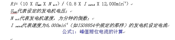 負(fù)載突降狀態(tài)的額定功率是由內(nèi)阻表示的,由該公式得到了一個發(fā)電機(jī)的內(nèi)阻,如公式A-1所示。