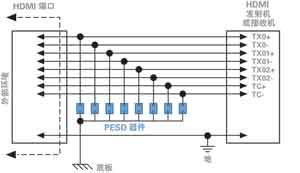 圖4帶有PESD器件的典型HDMI電路原理圖