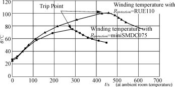 圖2PPTC用變壓器次級線圈的過熱保護特性
