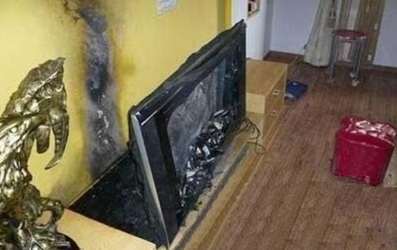 圖8 被雷電擊中的電視機
