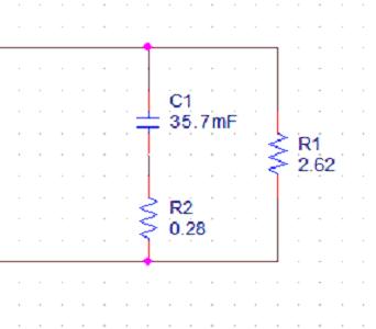 下圖給出了完成了參數定義的55W白熾燈泡的PSPICE等效模型。