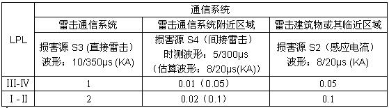 表3 通信系統雷電流浪涌的預計值
