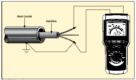 當(dāng)測試配線或電纜時,應(yīng)將其從操作板或機(jī)器上斷開,保持隔離。應(yīng)該在電線或電纜之間或其和地之間進(jìn)行測量(參見第4頁的圖4)。IPCEA(Insulated Power Cable Engineers Association)提供下列公式,推薦了最小的絕緣電阻值。 R = K x Log10 (D/d) 表10. 電纜絕緣電阻 R -每1000 英尺 (305 米)電纜的阻抗,單位為MΩ。基于500伏特的DC測試電壓,在15.6?C (60?F)的溫度下通電1分鐘。 K-絕緣材料常數(shù)(例如,絕緣浸漬紙-2640, 漆包布鉛皮-2460, 熱塑聚乙烯材料-50000,合成聚乙烯-30000)