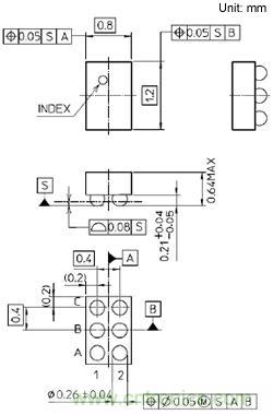 超小型封裝WCSP6B(0.8mm×1.2mm, t:0.64mm(最大值))