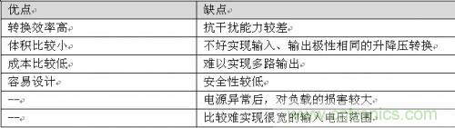 表 1非隔離電源的優缺點