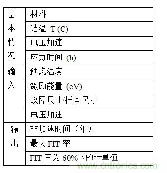 這個(gè)標(biāo)準(zhǔn)還指定了3個(gè)批次的產(chǎn)品,每個(gè)批次有77個(gè)部件,不應(yīng)在應(yīng)力下出現(xiàn)故障。231個(gè)部件中的零故障標(biāo)準(zhǔn)意味著批內(nèi)缺陷允許百分比 (LTPD) 的值為1。這表示,你有9成的把握地宣稱,在推測的應(yīng)力條件下,一個(gè)批次內(nèi)有1%的部件是有缺陷的。換句話說,在Tj = 55°C的溫度條件下運(yùn)行9年,在最大工作電壓上被偏置。最初地最大故障率 (FIT) 大約為50。Tj = 55°C下的FIT也是使用0.7eV的激活能量,從231個(gè)部件的零故障結(jié)果中得出。