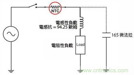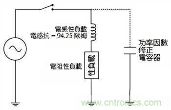 圖1.將并聯電容器加在電感性負載上