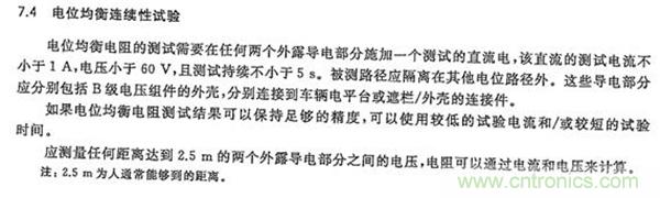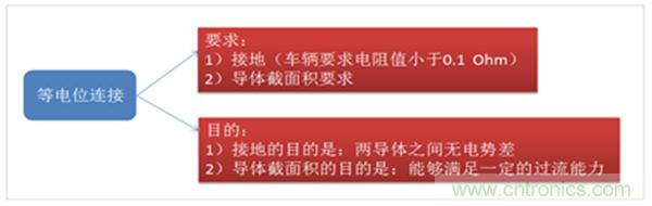 ③ISO 6469-3 Electrically propelled road vehicles-Safety specification-Part3:Protection of persons against electric shock GB/T 18384-3對等電位連接的設計要求、測試要求在標準6.3.1和6.9中做了明確規定。