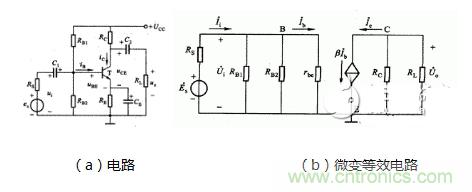 圖1.分壓式偏置電路及其微變等效電路