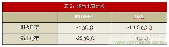 • 較低的柵極和輸出電荷:GaN提供較低的柵極電荷。與MOSFET的4nC相比,典型的中壓器件具有大約1nC的柵極電荷(表2)。較低的柵極電荷使設(shè)計(jì)具有更快的導(dǎo)通時(shí)間和轉(zhuǎn)換速率,同時(shí)減少損耗。