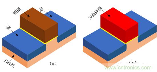 圖1.13鋁柵和多晶硅柵的MOS管結(jié)構(gòu)圖
