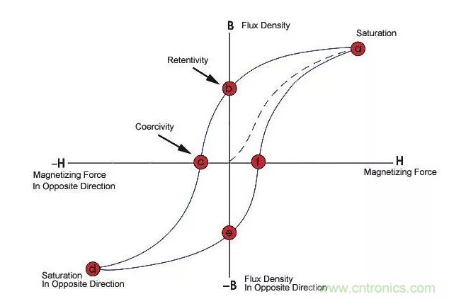 增加磁芯的磁導率,可以提高電感值,通常使用鐵磁性材料做磁芯。鐵磁性材料存在磁飽和現象,即當磁場強度超過一定值時,磁感應強度不在增加,即磁導率下降了,也就是電感下降了。在額定電感值范圍內,允許的最大電流即為飽和電流。