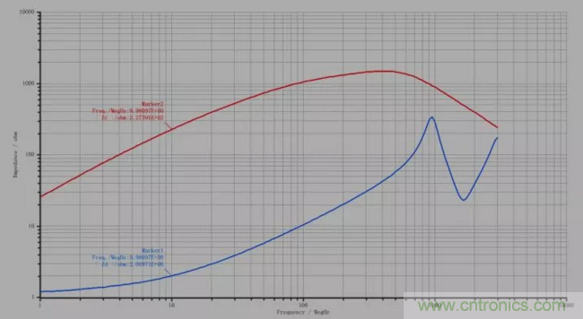 下圖是某共模電感的共模阻抗和差模阻抗。
