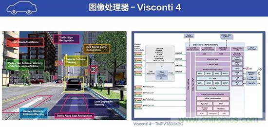 東芝圖像識別處理器可并行運行多個圖像識別應用,并支持用于夜間行人識別的可靠系統解決方案。Visconti 4已經是第四代圖像識別處理器芯片,與前一代產品相比,處理速度進一步提高,它采用八核異構架構,與前一代產品相比,處理時間縮短一半,識別時間縮短一半,可以降到50毫秒以內。