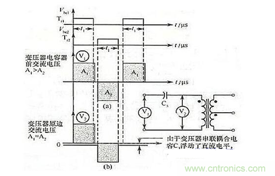 如果要這種不平衡的波形驅動變壓器,將會發生偏磁現象,致使鐵心飽和并產生過大的晶體管集電極電流,從而降低了變換器的效率,使晶體管失控,甚至燒毀。