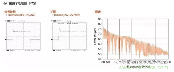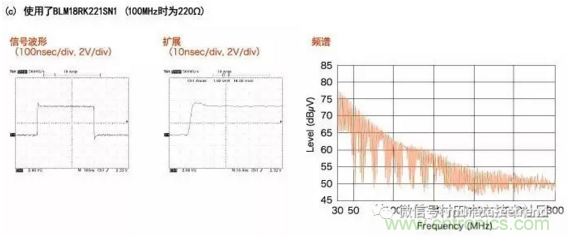 BLM18R不僅能顯著抑制100MHz以上頻帶的頻譜電平,還能抑制波形失真。