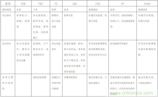 常用的材質(zhì)主要有PA6、PA66、ABS、PBT、pp等,筆者總結(jié)了它們的具體性能差異,見表2。設(shè)計插件時可根據(jù)不同的需求選擇不同的材質(zhì),還可根據(jù)實際情況在塑料中添加阻燃或增強材料,以達到增強或阻燃的目的,如添加玻璃纖維增強等。