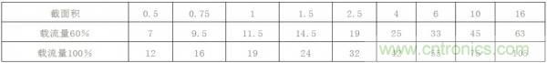 表3 允許流通電流與導線截面積關(guān)系經(jīng)驗值
