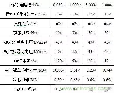 表2:充電電阻器不同阻值時(shí)的特性參考參數(shù)
