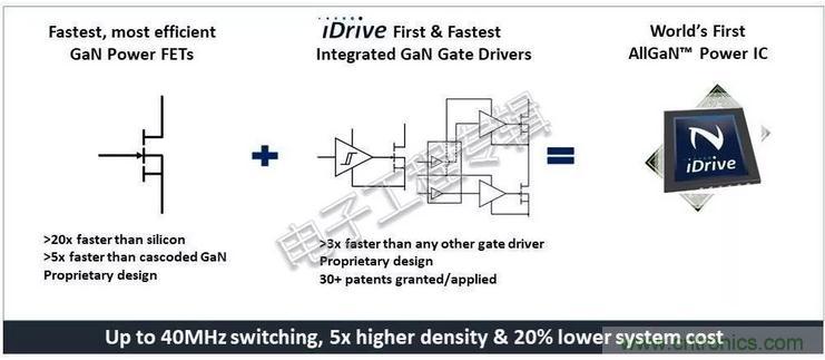 由于這一切都發生在單個芯片上,因此相對容易制造和封裝,這自然也帶來了其他系統好處。由于FET的柵極直接連接到柵極驅動器的輸出,因此驅動器輸出和柵極輸入之間的阻抗為零。 這也意味著GaN作為分立器件不容易搞定,但如果你能在一個盒子里集成一個完整的解決方案,那就意味著你可以小心地控制流向柵極的電壓,這意味著也可以保護柵極。