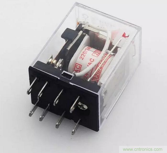 中間繼電器一般有2對觸點的和4對觸點的,下圖為4對觸點的中間繼電器: