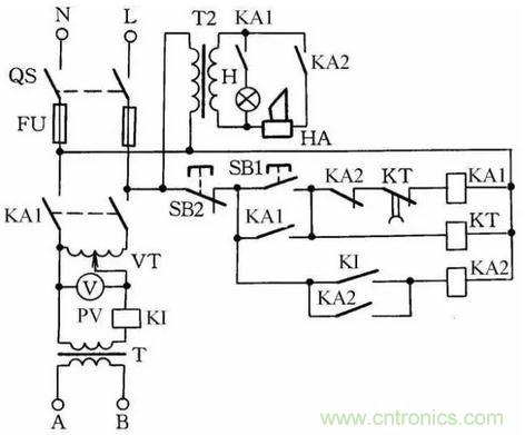 若被測物絕緣擊穿,電流即迅速增加,過電流繼電器KI動作,KA2得電動作并自鎖,KA1失電,KA1的常開觸點切斷主回路電源,蜂鳴器HA發出聲響,按下SB2后電路全部關斷。應用操作這種儀器時,要特別注意人身安全,工作通電時,高壓測試區禁止人靠近。