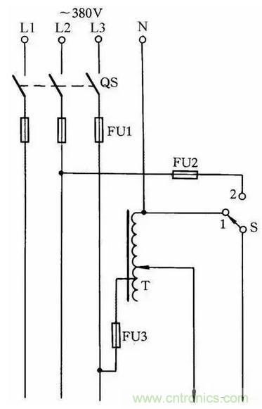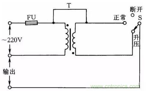 34擴大單相自耦調壓器調節電壓范圍線路