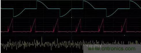 采用類似的方式,可以測量開關(guān)模式電源電流波形的RMS電平(如圖5)。