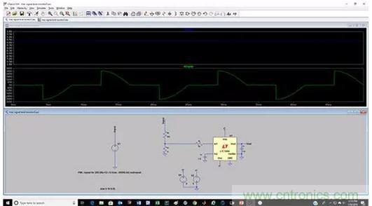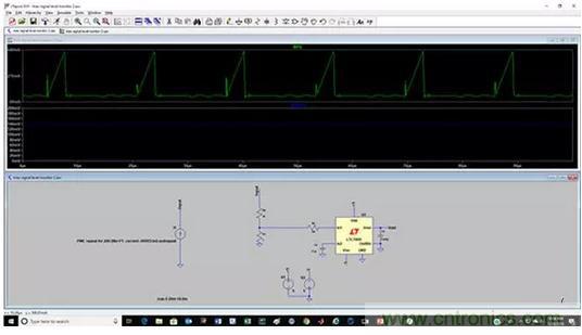 圖5: LTC1966仿真,用于測量開關(guān)模式電源的開關(guān)FET電流波形的RMS值。(圖片來源:Digi-Key Electronics)
